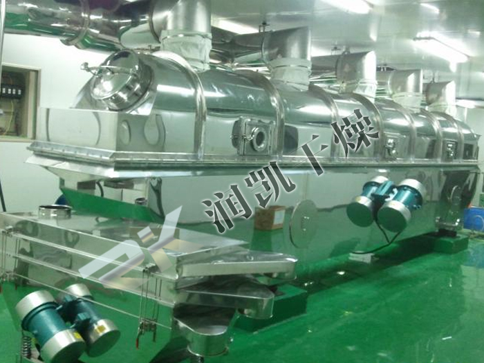物料自進料口進入機內, 在振動力作用下, 物料沿水平方向拋擲向前連續(xù)運動,熱風向上穿過流化床同濕料換熱后, 濕空氣經旋風分離器除塵后由排風口排出, 干燥物料由排料口排出。