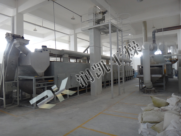 DW系列帶式干燥機(jī)(分子篩烘干機(jī),分子篩干燥機(jī))將所要處理的分子篩通過適當(dāng)?shù)募恿蠙C(jī)構(gòu)(如星型布料器、擺動帶、粉碎機(jī)或造粒機(jī)),分布在輸送帶上,輸送帶通過一個或幾個加熱單元組成的通道,每個加熱單元均配有空氣加熱和循環(huán)系統(tǒng),每一個通道有一個或幾個排濕系統(tǒng),在輸送帶通過時,熱空氣從上往下或從下往上通過輸送帶上的分子篩,從而使分子篩能均勻干燥。