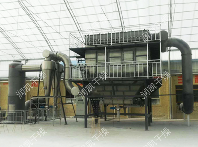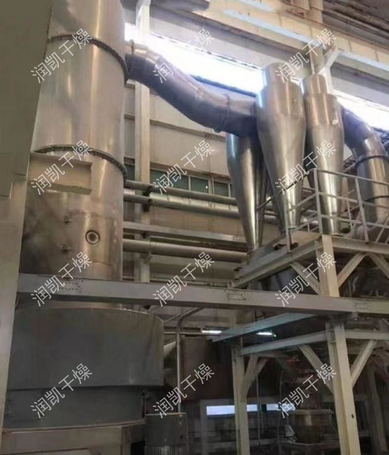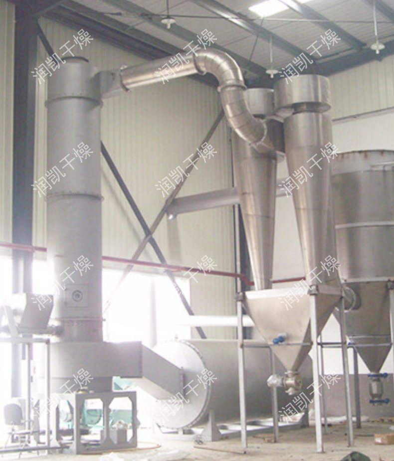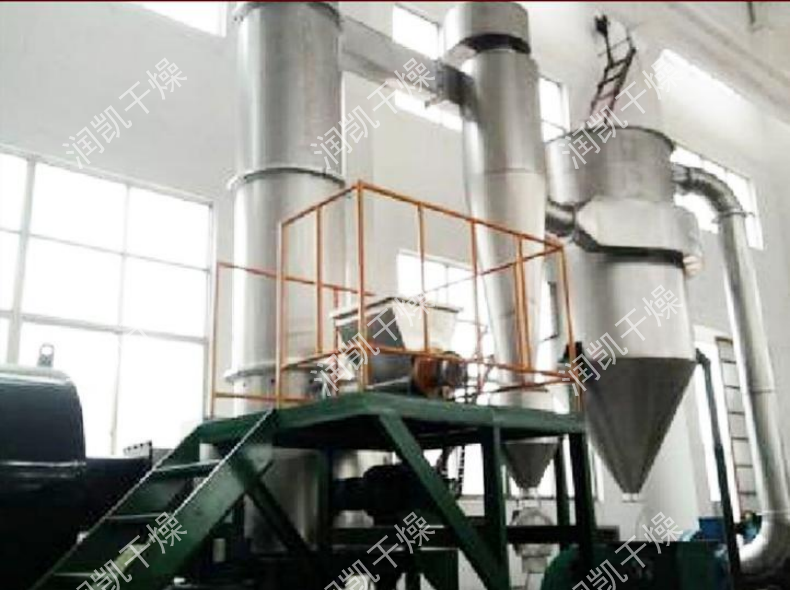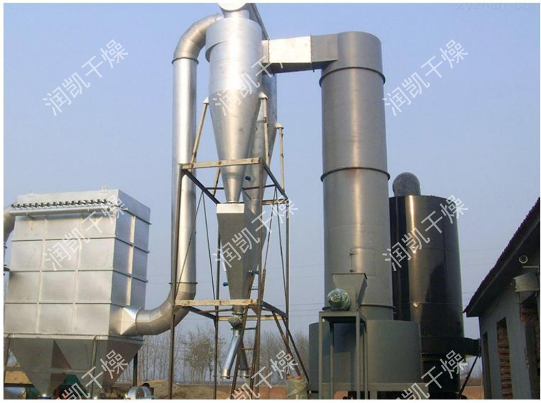 干燥氣體進(jìn)入干燥機(jī)底部,產(chǎn)生強(qiáng)烈的旋轉(zhuǎn)氣流,對(duì)器壁上物料產(chǎn)生強(qiáng)烈的沖刷帶出作用,消除粘壁現(xiàn)象。 在干燥機(jī)低部高溫區(qū),熱敏性物料不與熱表面直接接觸,并裝有特殊裝置,解決了熱敏性物料的焦化變色問題。